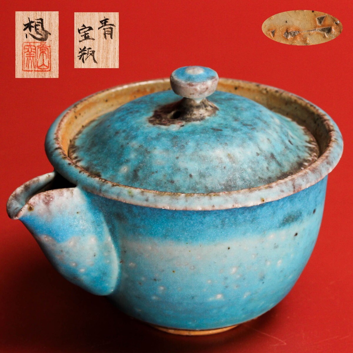 - 山田想 青宝瓶 共箱 栞 煎茶道具 本物保証 (祖父:人間国宝 三代 山田常山)
