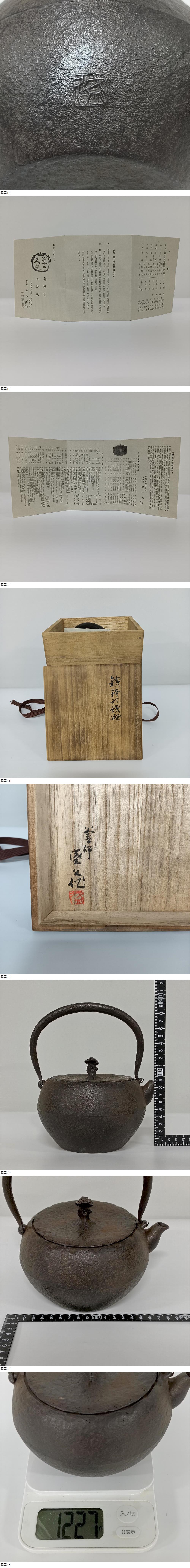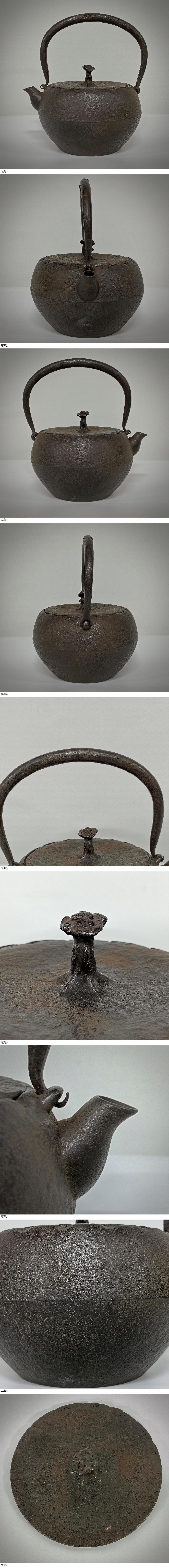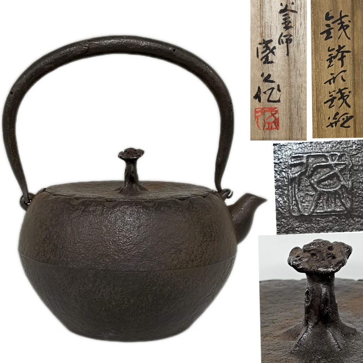 > 【A4795】未使用 十三代 鈴木盛久(繁吉)造 鉄蓋 霊芝摘 鉄鉢形 鉄瓶 茶道具 湯沸 南部鉄器 共箱 総重量約1227g