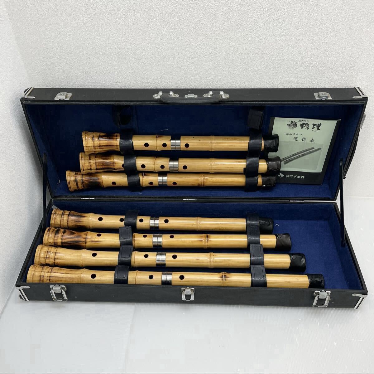 - (0326イ1) ワダ楽器 銘木尺八 胡蝶 合竹高級管 和楽器 尺八 日本の縦笛 ケース付き ※音出し未確認/長期保管品