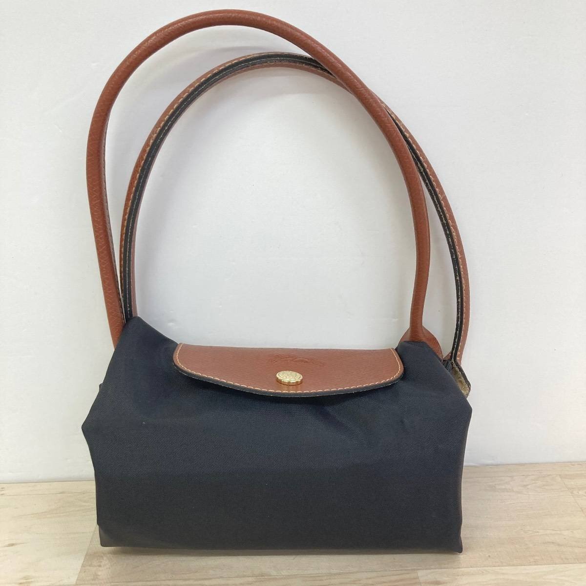 - 美品 LONGCHAMP ロンシャン トートバッグ/ハンドバッグ ネイビー×ブラウン 1948 ロゴ金具 レディース 肩掛け[OM02173]
