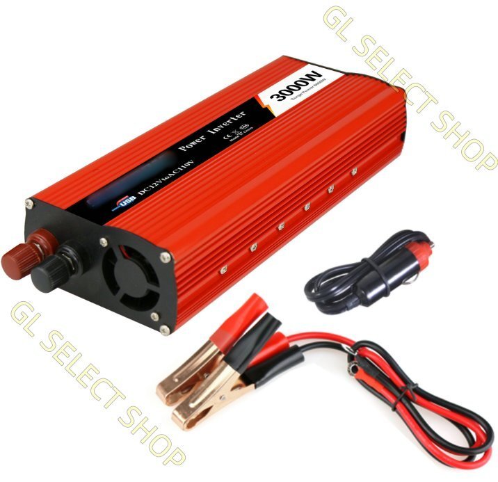 - 正弦波パワーインバーター3000W(Peak 6000W)DC 12VからAC110V電圧コンバーター USB接続カーチャージャーアダプター
