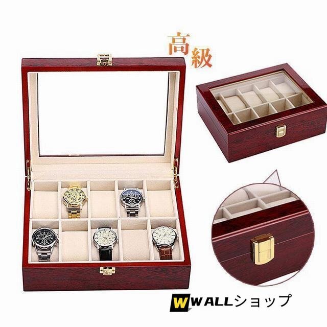 - 時計収納ケース コレクションケース 木製 10本用 BOX 腕時計ケース 高級ウォッチボックス コレクション インテリア 保管 展示 高級 レッド