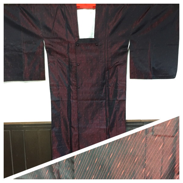 - 【雨ゴート】ポリエステル 着丈128.5cm 黒地に臙脂の線