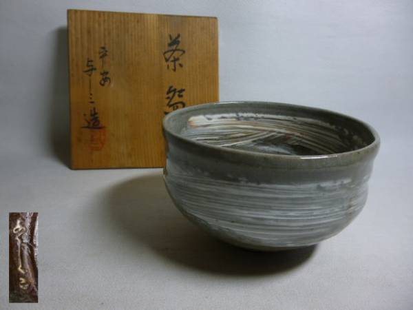 - 旧家から 平安 与三造 刷毛目茶碗 共箱 茶道具
