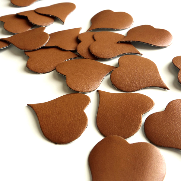 - 送料110円~★リサイクルレザー革ハートシールステッカー20枚入★キャメル