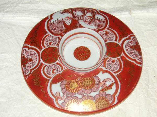 - 九谷 蓋つき茶碗 赤絵 蒸し茶碗 4客