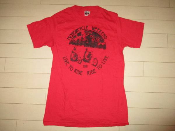 > 1981 ビンテージ バイカー ハーレー Tシャツ S 赤 チョッパー ヘインズ ミーティング ショップ チョッパー ショベルヘッド