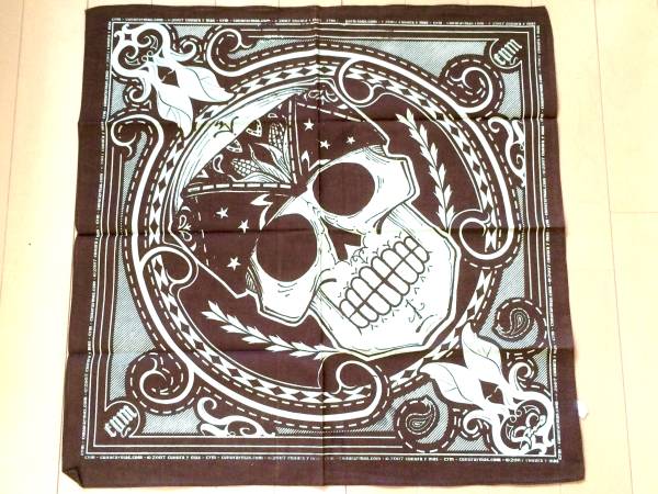 > 希少★CYM バンダナ 茶色 ブラウン 54cm×54cm チカーノ チカーナ スカル ドクロ ローライダー 入手困難 再入荷なし 現品のみ 新品