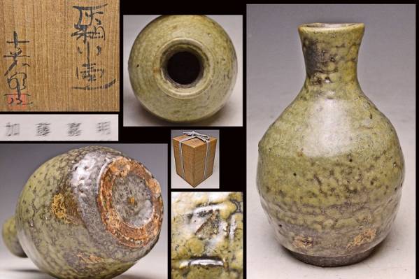 - 加藤嘉明 ★ 灰釉小壺 ★ 共箱栞 ★ 徳利にも ★ 師: 日根野作三 ★ 酒器 ★
