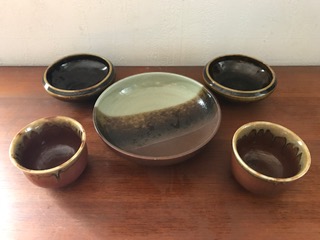 - 民芸器5個セット ぐい呑み2個小鉢2個漬け物鉢1個