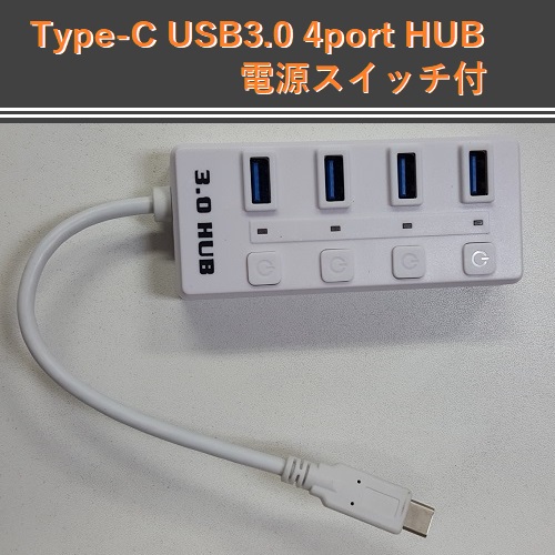 - 【G0049】 USB-C to USB 3.0 (USB-A) x4ポート HUB 電源スイッチ付き ホワイト