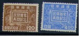 - 昔懐かしい切手 民間貿易再開 図案は当時の輸出品 2枚組1947.8.15発行
