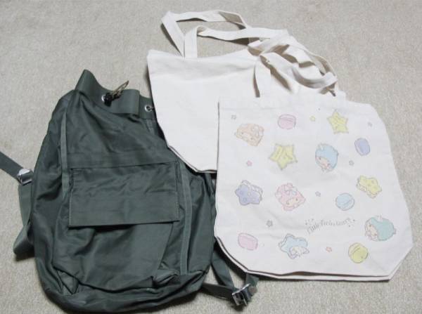- アーミーグリーンナイロンリュックと帆布トート3個セット