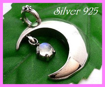 - シルバー925銀の天然石ムーンストーン 三日月 ペンダント/6月誕生石