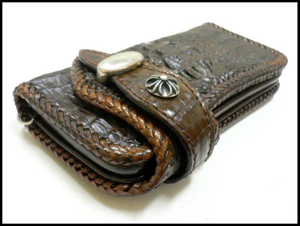 - 牛革×ワニ革クロコダイルこぶ付レザーウォレット こげ茶/革財布ALL20%OFF