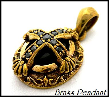 - 真鍮製Brass天然石オニキス アーマード クロス ブラックジルコニア付ブラス ペンダント