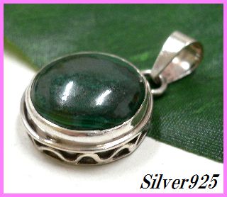 - シルバー925銀の天然石マラカイト ペンダントtypeF/ALL50%OFF