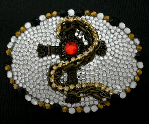 - 合金製メタル デコレ ラインストーン十字架クロス ベルト バックル赤