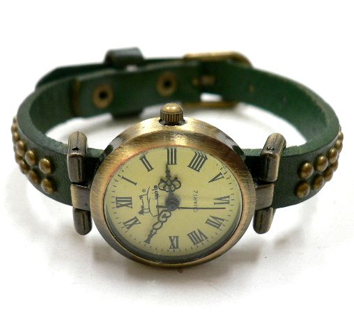 - 牛革ラウンド スタッズ レザー ブレス ウォッチ グリーン/1点のみ