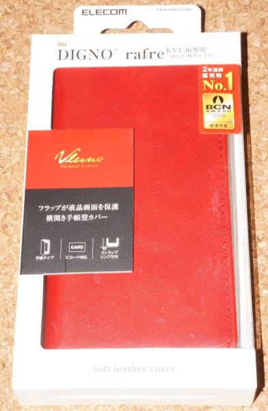 > ★新品★ELECOM DIGNO rafre KYV36 レザーカバー 横開き手帳型 レッド