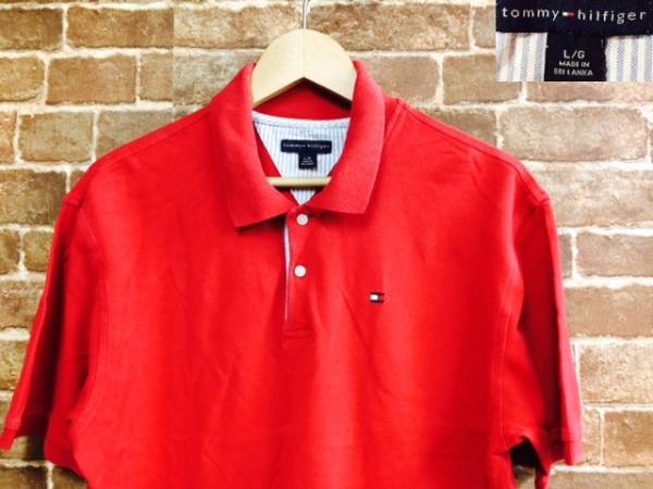 - ★表記L!トミーヒルフィガー.Tommy Hilfiger.赤.ユーズド半袖カラーポロシャツUSA古着クラシックアメリカン.雰囲気◎cK.カルバンクライン
