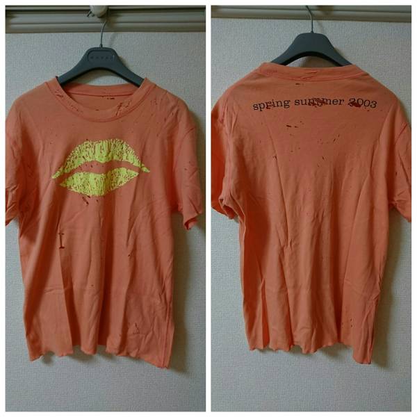 - ルシアンペラフィネlucienpellat-finetダメージ加工Tシャツ唇キスマークプリント