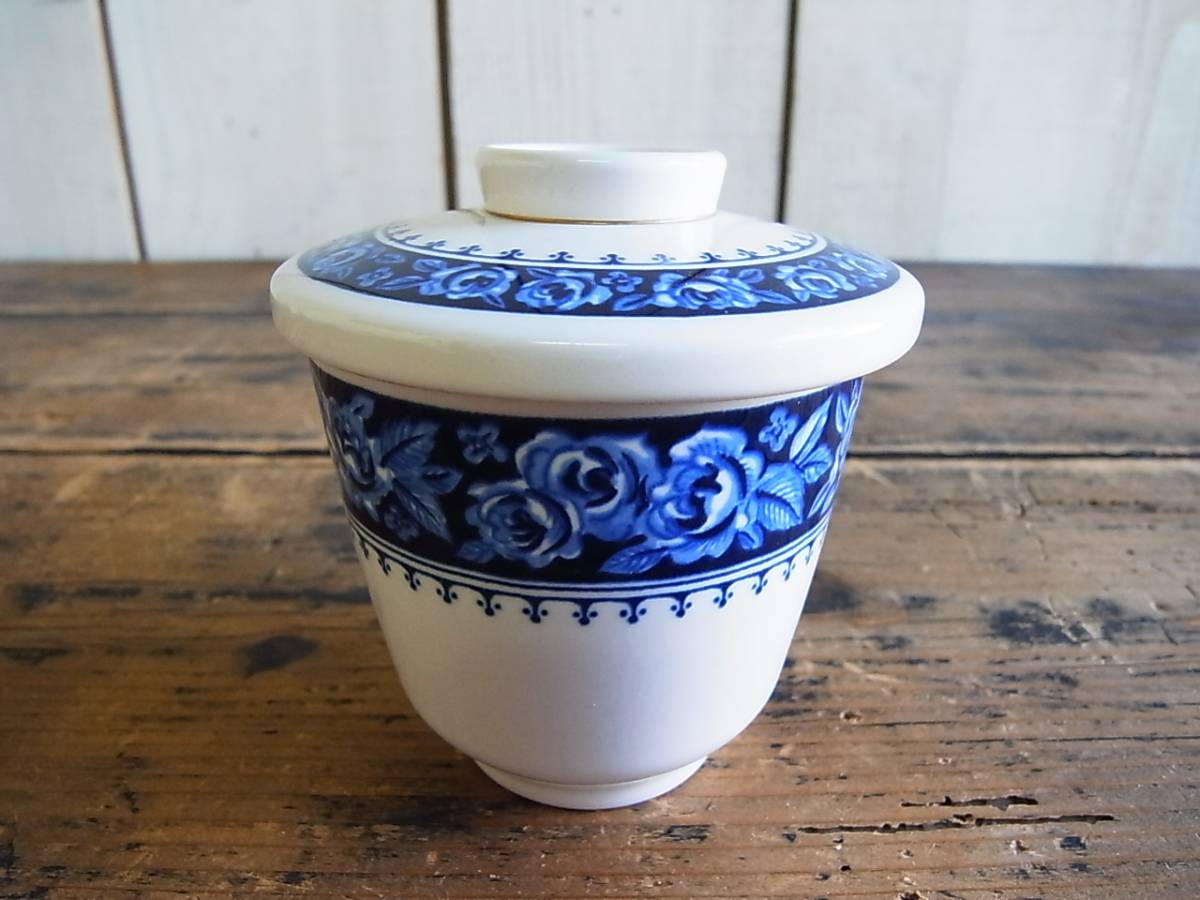 - TOYOTOKI 青いばらの茶碗蒸し③/東洋陶器 TOTO 蓋つき レトロ カップ 薔薇