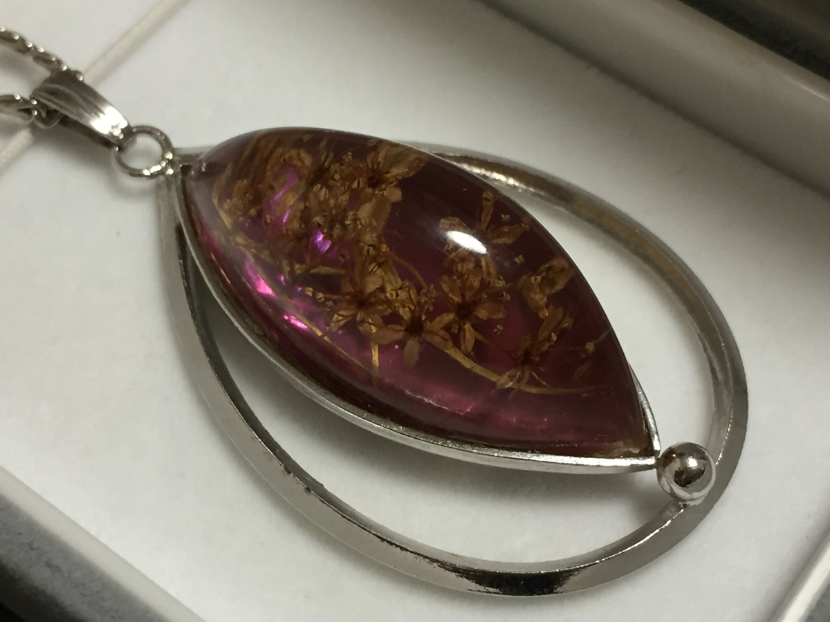 - ドライフラワー 11.5g オープンドロップ形 ロングペンダントネックレス