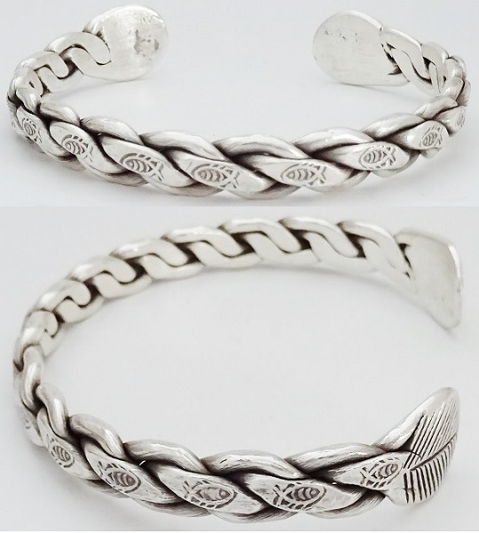 - ◆カレンシルバーバングル◆編み込み◆刻印・魚◆カレン族【17tv05b】