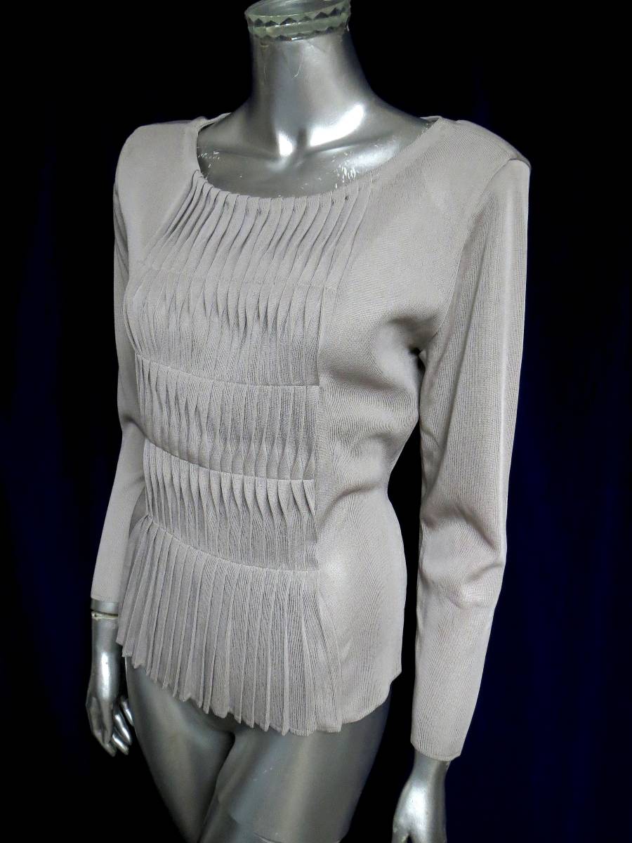 - 二点落札で送料無料! M980 MOGAモガ グレー プリーツ 長袖 トップス レディース