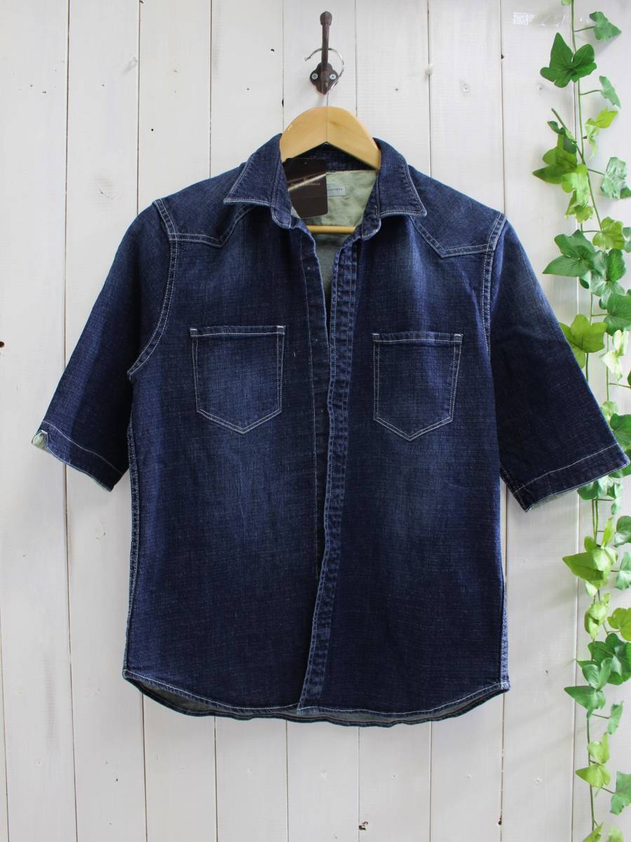 - 新品 訳有り*nano universeナノユニバース*ウォッシュ加工デニムシャツ L
