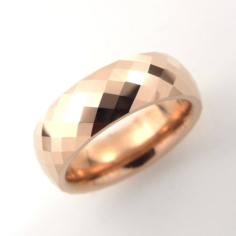 > ★お勧め★人気★手入れ不要★肌に優しい★金属アレルギー&温泉&海水浴ご使用OK★ピンクゴールドタングステンリング★甲丸ダイヤ柄カット