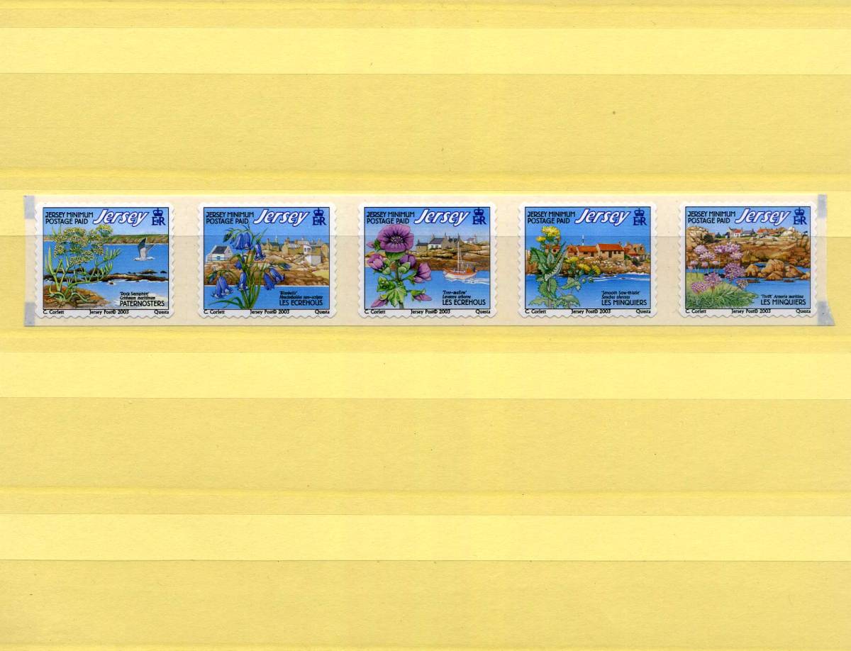 - 英領 ジャージー JERSEY 2003年◆沿岸と花 未使用 MNH 5種完 タック・ラベル 綺麗 送料無料 ◆T-9