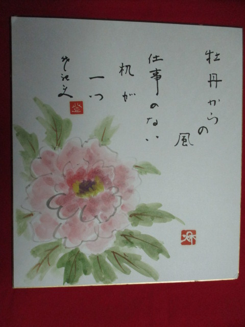 ★色紙★書★水彩画?★花図・牡丹★登?・詳細不明・・★