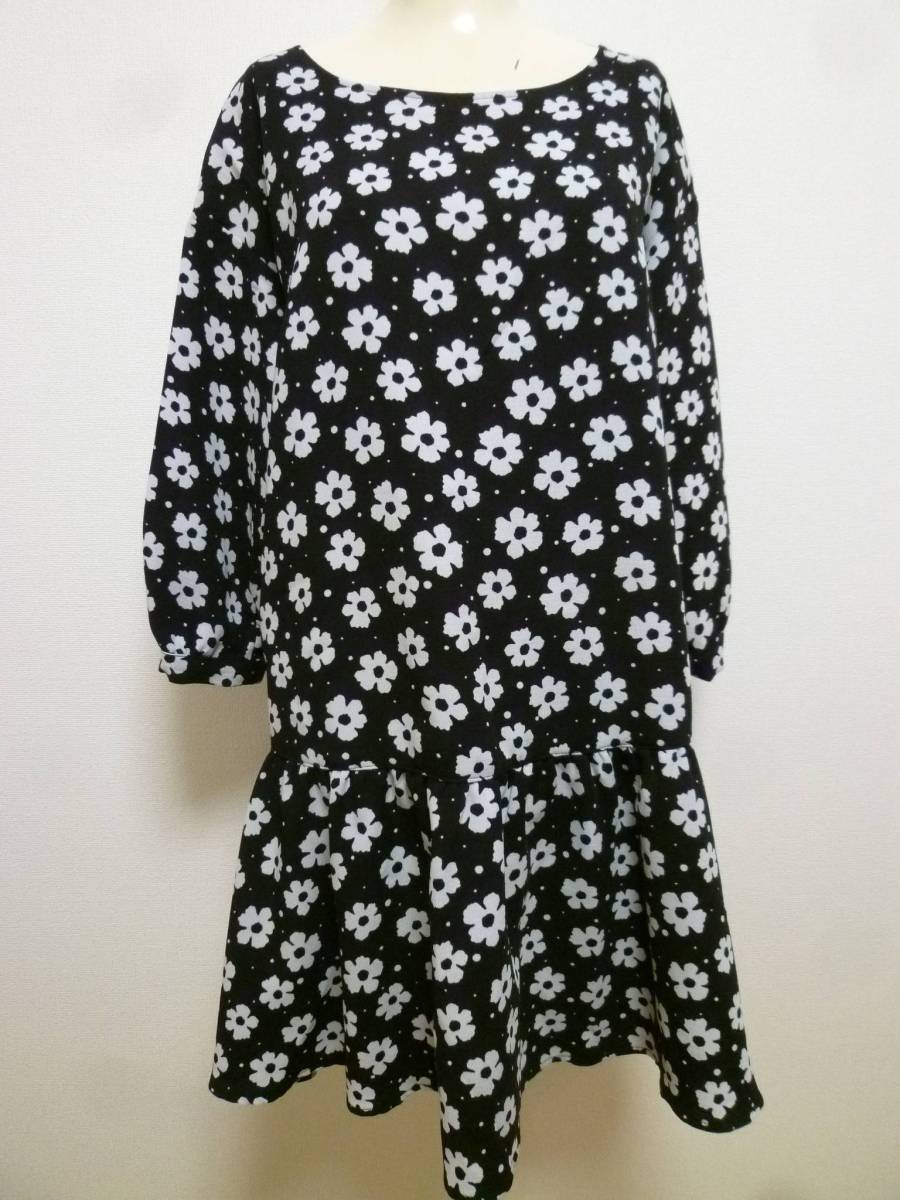 - LOWRYS FARM/ローリーズファーム♪黒×白花柄デイジー風フレアーワンピースL/モノトーン系ホワイトブラック♪215