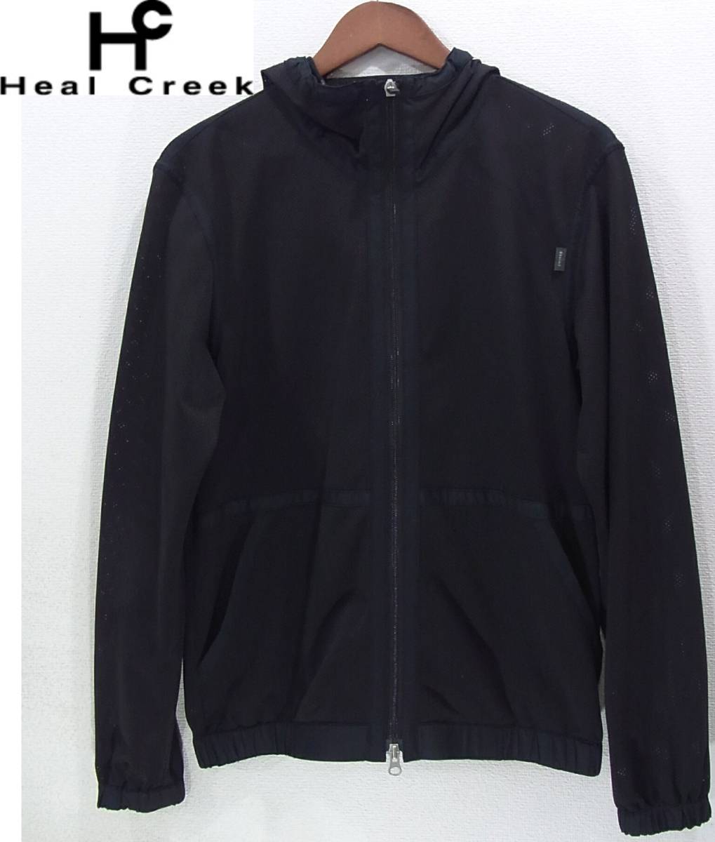> 送料660円~(即決は送料無料)Heal creekフード付きメッシュジャージ48(M)黒メンズ長袖ブルゾン ゴルフ ブラック ジャンパー ヒールクリーク