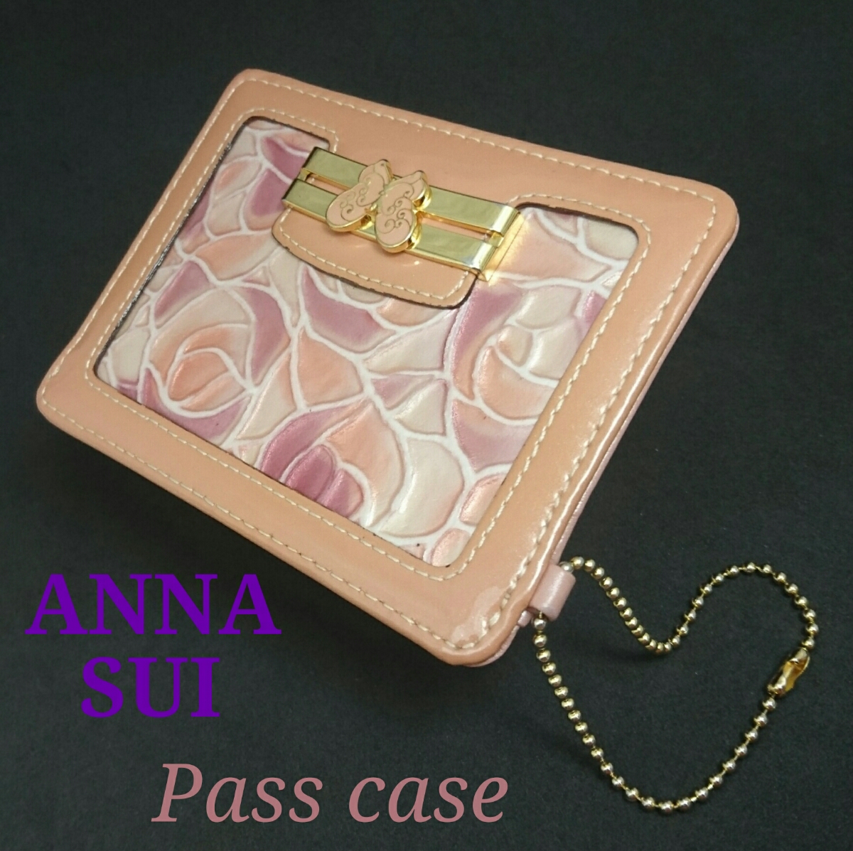 - ANNA SUI アナスイ 牛革 パスケース ブラウン ピンク ローズ 中古品 G1172