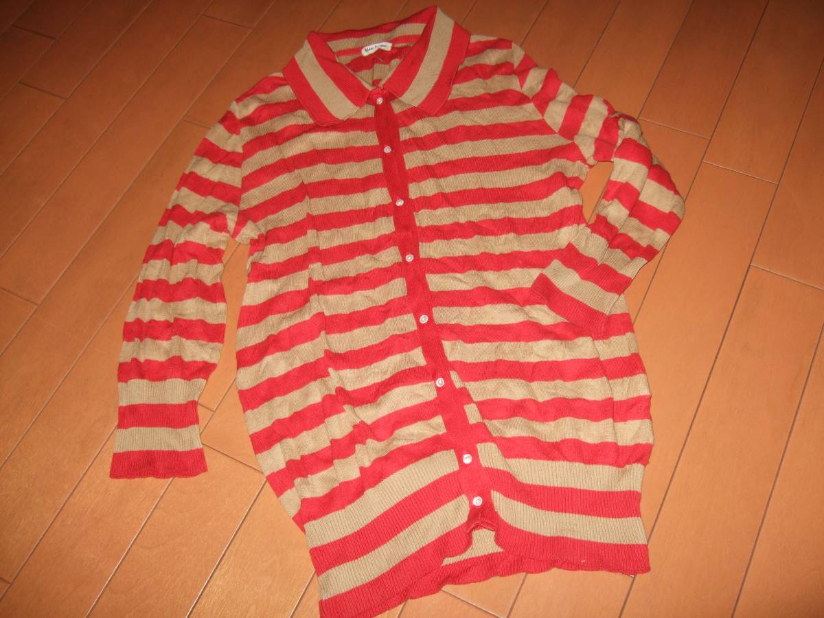 - 良品☆ブランバスク 襟付コットン薄手カーディガン☆ボーダー38