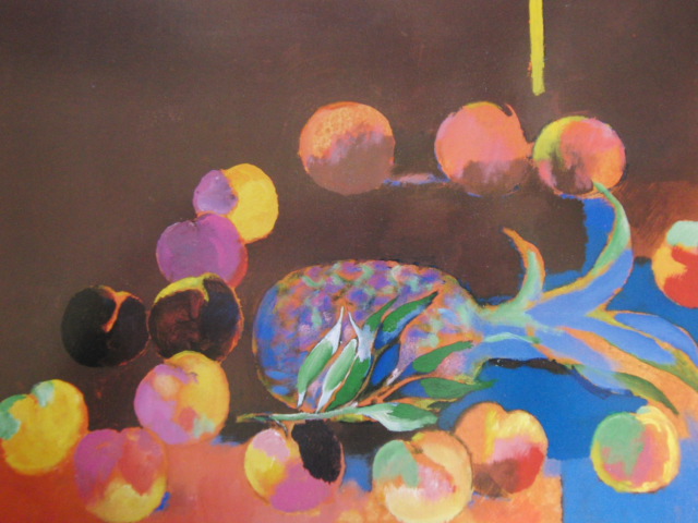 - ギアマン、パイナップルと桃、希少な額装用画集より、新品高級額装付、状態良好、送料無料、巨匠