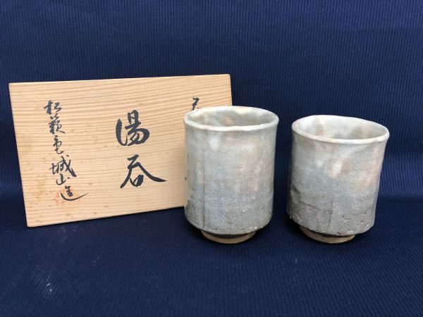 - 未使用品★萩焼 松籟庵城山窯 湯呑 茶器 2客セット 共箱あり管理1803 H-3