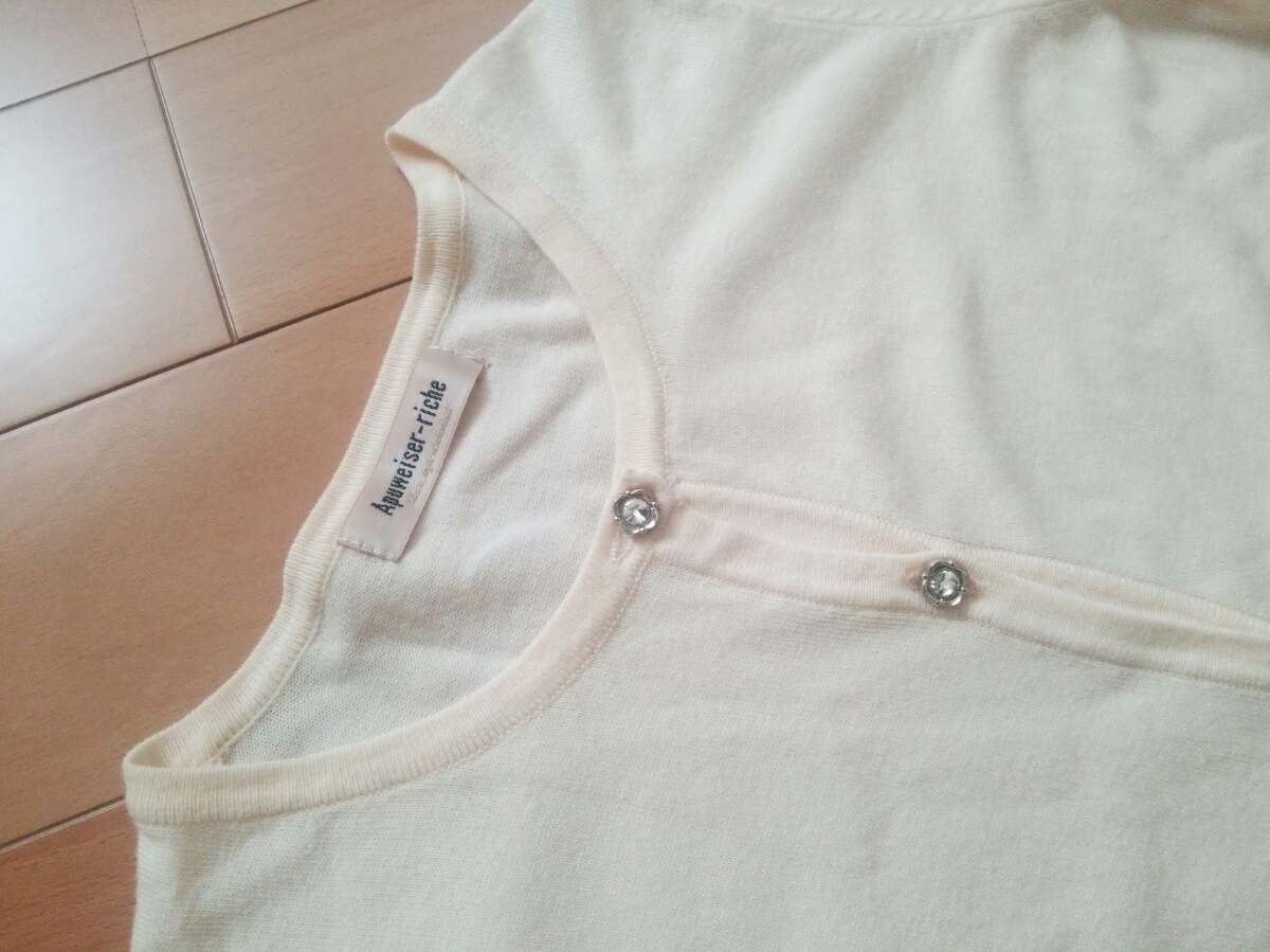 > アプワイザーリッシェ 2 M ビジュー フラワー カーディガン きなり ライトベージュ ホワイトベージュ 長袖 ニット トップス カットソー