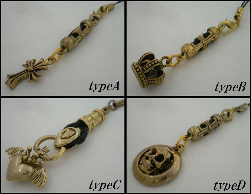 - 合金製クロムハーツ風メタル ストラップ真鍮色 4種より/クロス.クラウン.ハート.スカル/ALL20%OFF