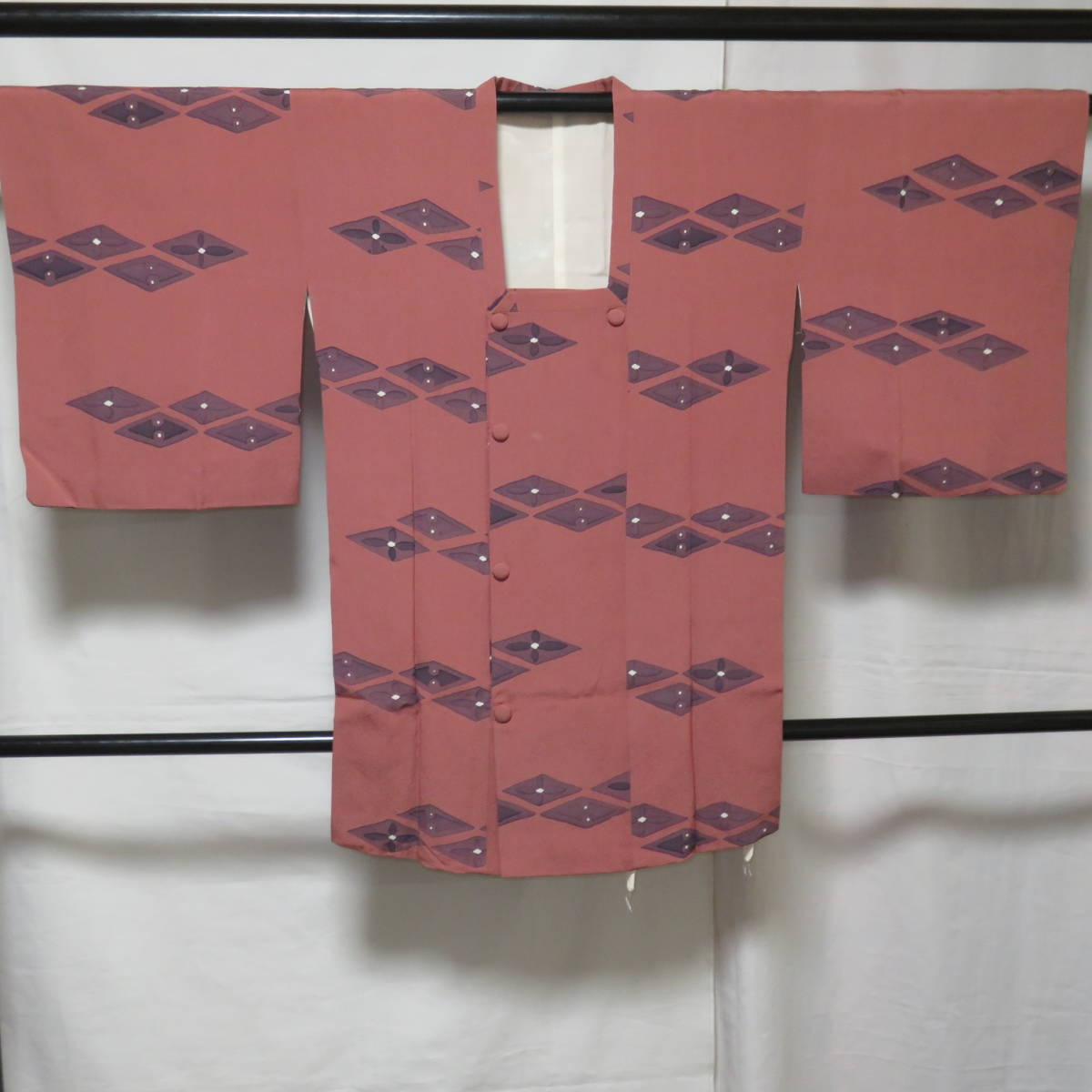 - 【桐輪】道行コート☆送料無料☆美品*39セ-ル{正絹*高級染*袷仕立*道行コ-ト}丈88-裄63*一越地*黄赤色地*手染の2種類の菱文様*№2141132