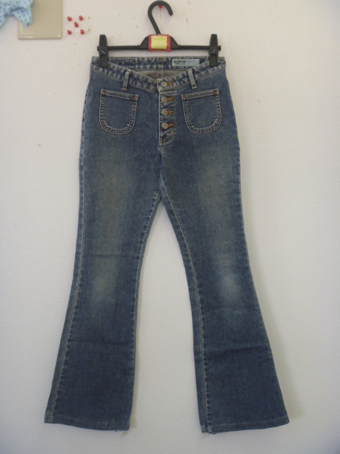 > ●◇【BOBSONボブソン】HAPPY FACE ウォッシュ加工?デニム ジーンズ ウエスト61 フロントボタン ブーツカット? レディース