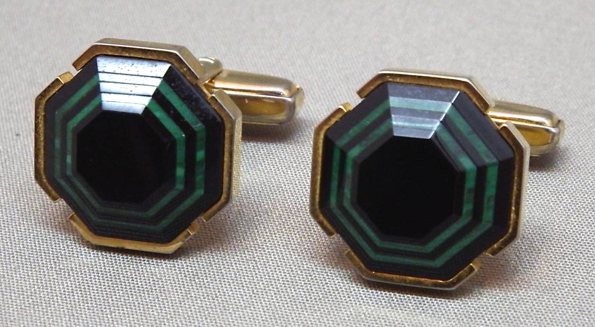 - EU-9262■SUN EAGLE サンイーグル カフス 天然オニキス 天然マラカイト 中古
