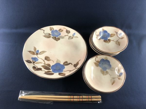 - 未使用品・激レア★ たち吉 週山 天ぷらセット 大皿 小鉢 はし セット 箱あり管理1806 E-13