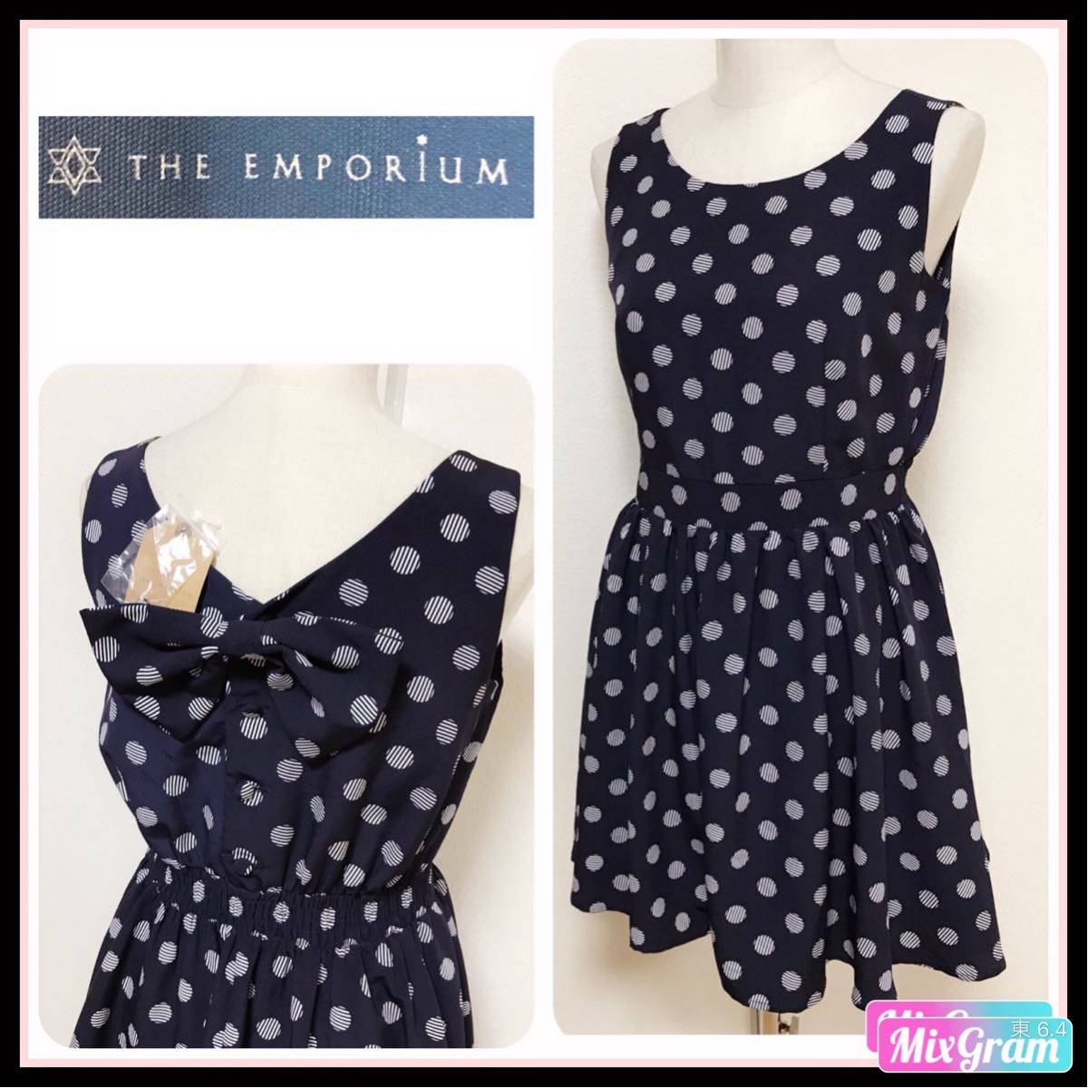 - THE EMPORIUM 新品★可愛いワンピース水玉 紺色レディース 早い者勝ち 激安 素敵 ブランド 上品 可愛い セール タグ付き おしゃれリボン