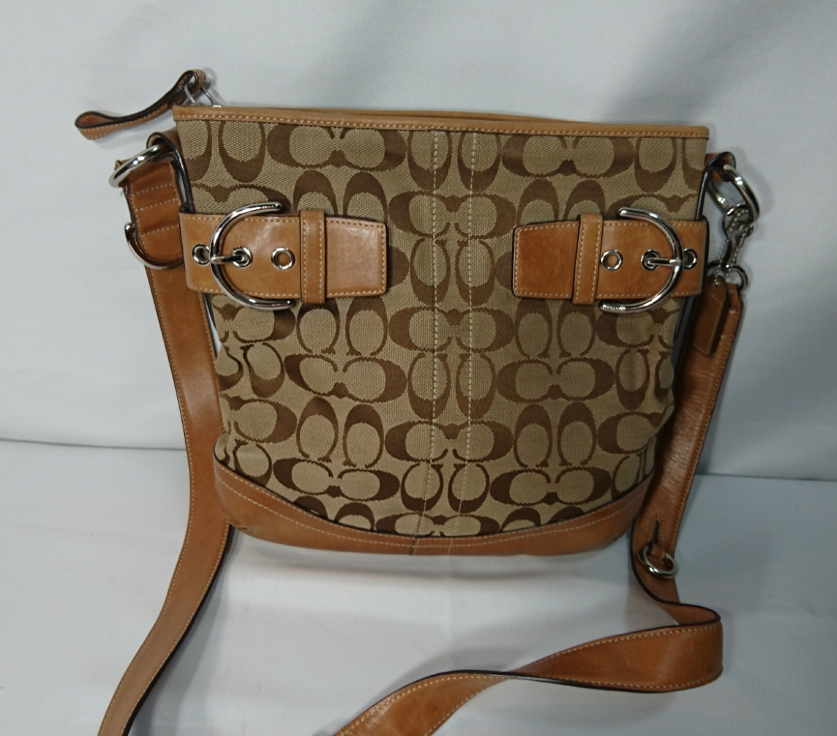 > 本物コーチCOACH本革レザーバッグショルダーバッグ茶ブラウンシグネチャー柄レディースビジネス仕事鞄トラベル