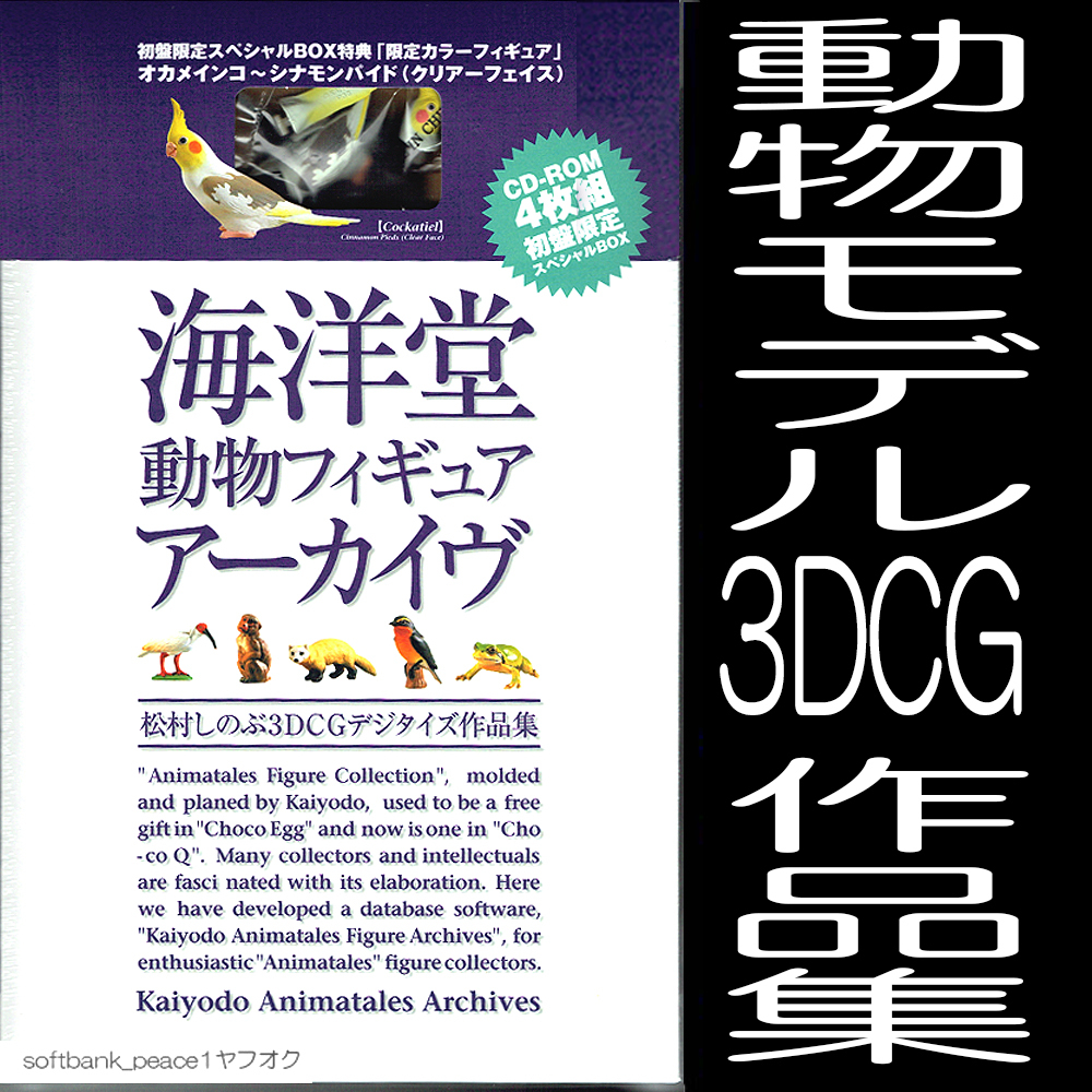 ●海洋堂「動物フィギュア・松村しのぶ3DCGデジタイズ作品集CD-ROM全4巻セット初回限定品BOX、オカメインコ~シナモンパイド(クリアーフェイス)彩色済みミニチュアモデル非売品つき」日本メーカー正規品。定価12000円。 絶版。稀少品。