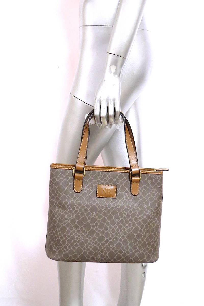 > 二点落札で送料無料! N22 定価32000円程 NINA RICCI ニナリッチ 茶 グレー 革 ミニ ハンド バッグ レディース ブラウン かばん レザー
